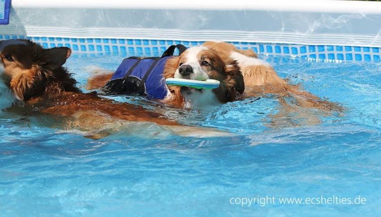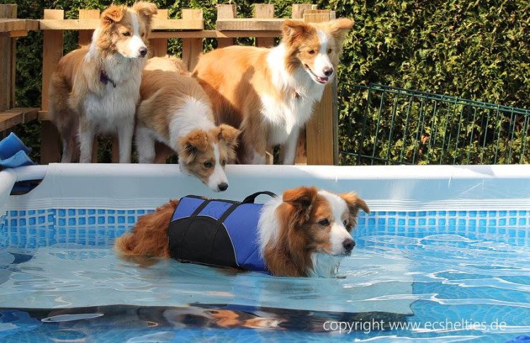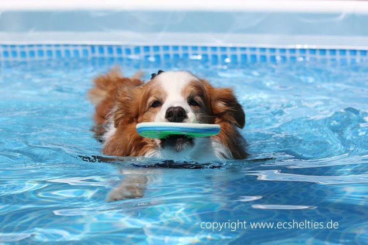 Sommer 2018 - da Scout viel schwimmen sollte, um die Hinterbein Muskeln zu trainnieren und wir keinen geeigneten See in unser Nähe fanden, haben wir uns entschlossen ,für die Hunde einen Pool zugelegt.