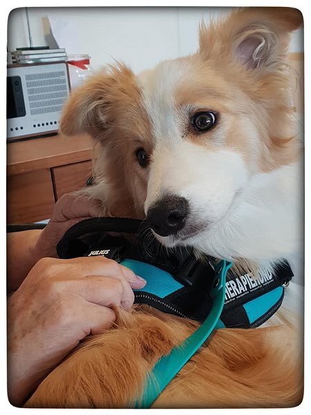 Wir sind sehr stolz auf Tala, die als Therapiehund in einer Schule arbeitet !